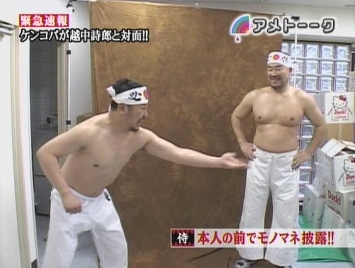 越中本人を前に緊張しまくりのケンドーコバヤシ。