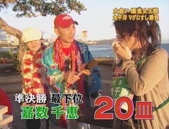 この戦いで生ものが苦手な嘉数さんが敗れてしまいましたが、それでも20皿食べてます。
