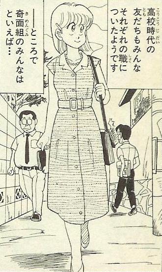 ストーリーとしては、大体『新キャラ登場⇒いじりor対決』みたいな流れが多いギャグマンガなのですが、この「ハイスクール!奇面組」がほかとは違うところは、ギャグマンガであるにもかかわらず連載年数に応じて年を取るのですね。同時期にジャンプで連載していた「きまぐれオレンジロード」のように学園ストーリーを中心とした作品でも、ラブコメなどでは年を取るというのは良くあるのですが、一話完結が多いギャグマンガでは普通は「サザエさん」や「ドラえもん」のようになんども同じ年を繰り返すグルグル漫画的な展開となることが多いのですよ。「ハイスクール!奇面組」の前には、「3年奇面組」(全6巻)が連載されており、中学生から高校卒業するまでが描かれています。とはいえ大人気連載だった為、1982年から1987年まで5年間に渡る連載で、何度か3年生卒業まで行ってしまいますが、作者がタイムマシーンで一年前に戻ると言う苦肉の策で高校生を続けていましたよ。最後にはそれぞれの未来へと歩み始めます。