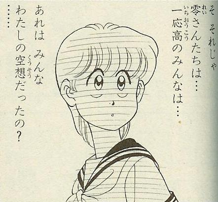 唯は保母さんになり、町をあるいてると卒業後に話していた夢をかなえた奇面組メンバーや千絵に会います、みんなの性格は相変わらずと言った感じです。そこに零が偶然を装って、座布団を持ちながら自転車で登場し、「グーゼンだね。よかったら後ろに乗っていかないか。」と誘います。唯は自転車の後ろに座りながら風を感じているのですが、その後真っ白いコマがあったと思ったら…